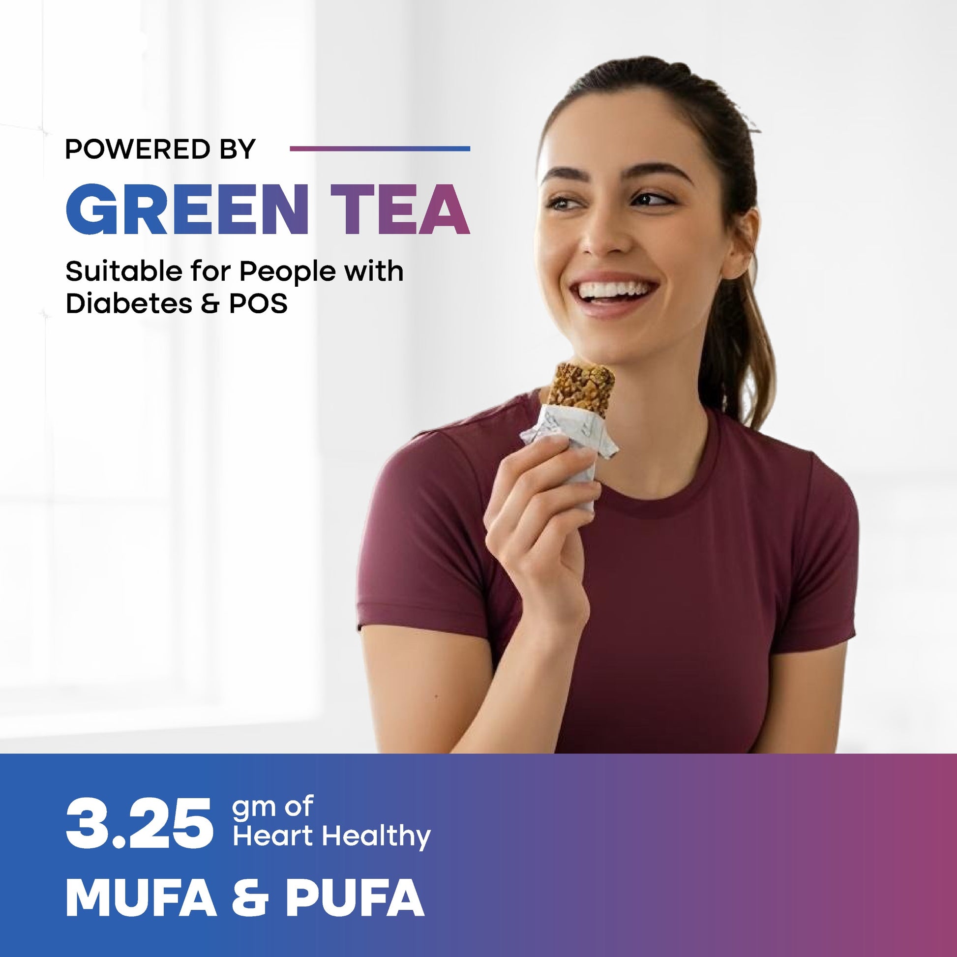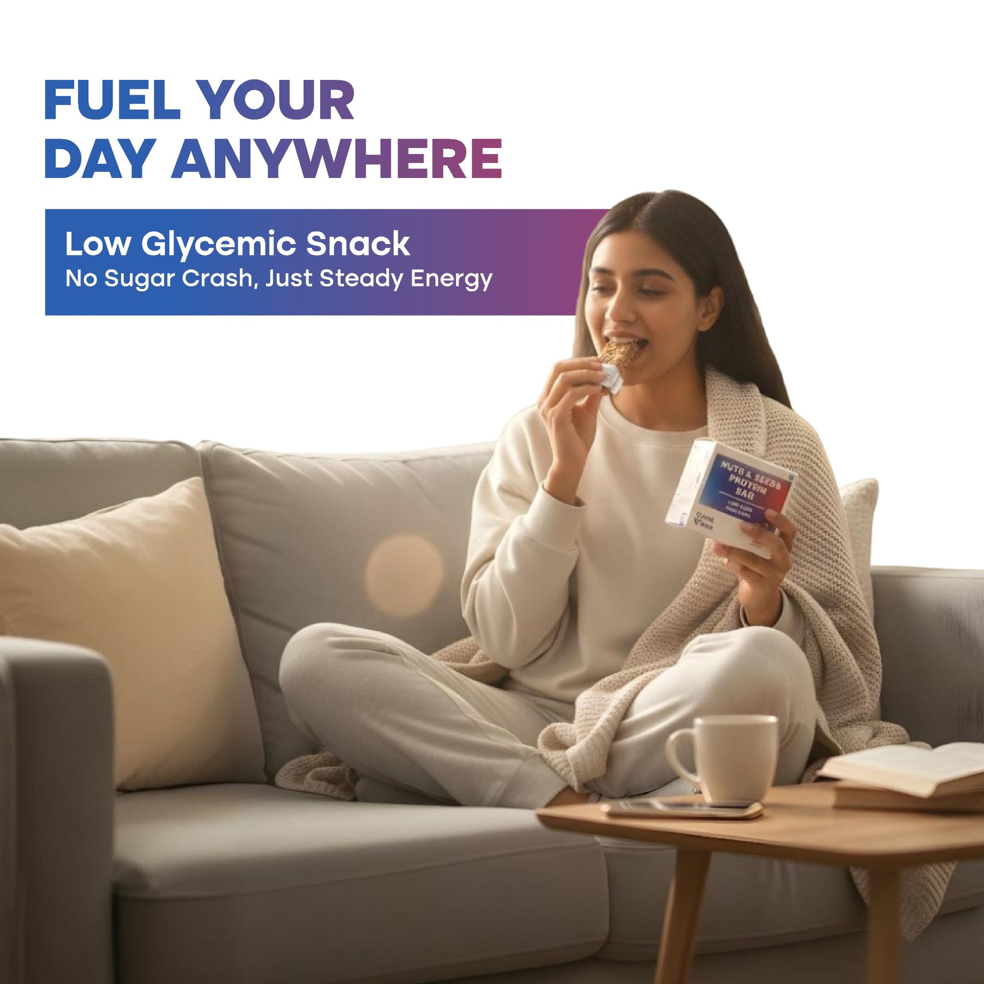 The GreatVibes Nuts Protein Bar delivers clean, powerful nutrition with 8.7g protein, 7g fibre, and zero added sugar. With only 3.2g net carbs and natural stevia sweetness, it’s perfect for weight loss, PCOS, and diabetes-friendly snacking.