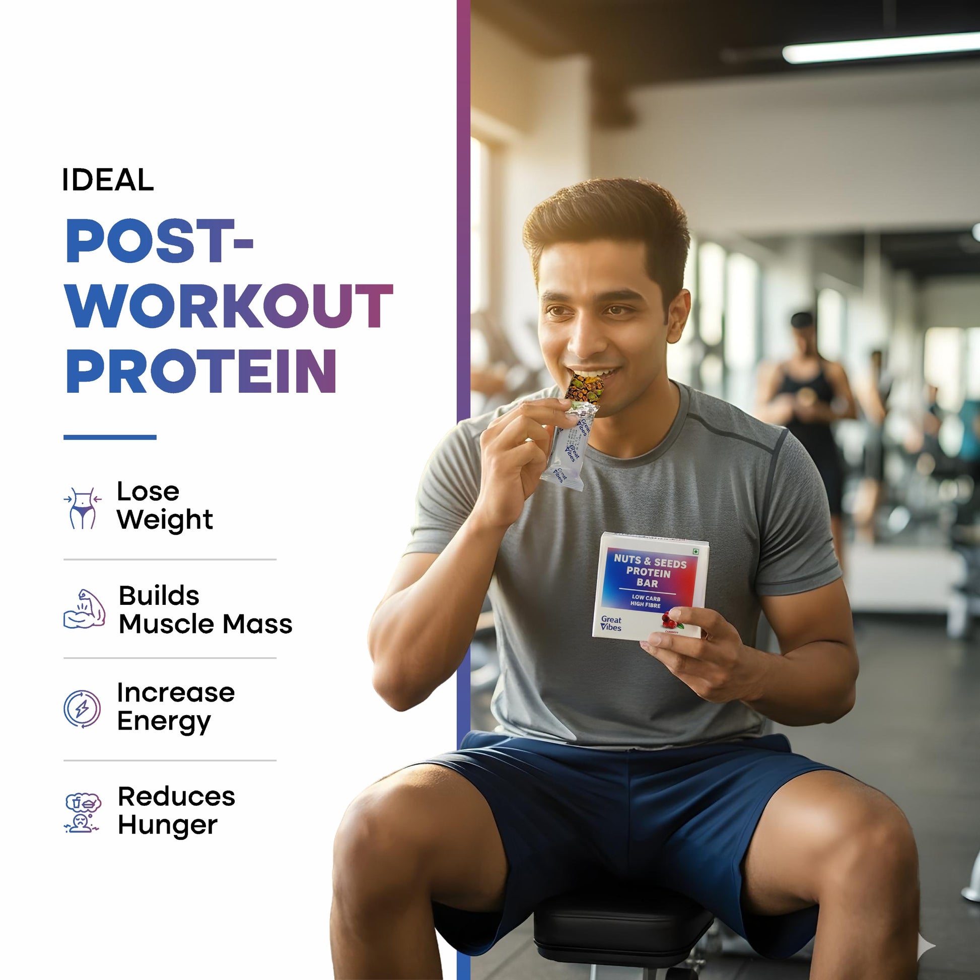 GreatVibes Nuts & Seeds enriched Protein Bar | High Protein & Fibre Minibars | Helps weight loss & muscle building (15 minibars x 25 gm)